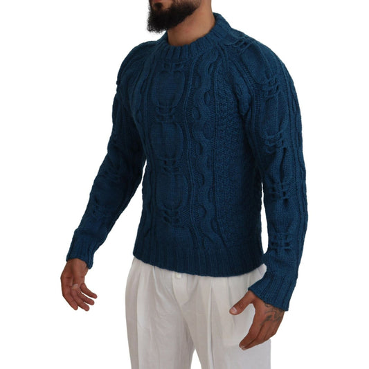 Dolce & Gabbana Blue Knitted Wool Alpaca Pullover Sweater