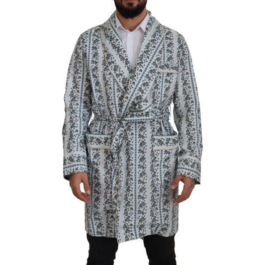 Dolce & Gabbana Blue Floral Cotton Robe Coat Jacket